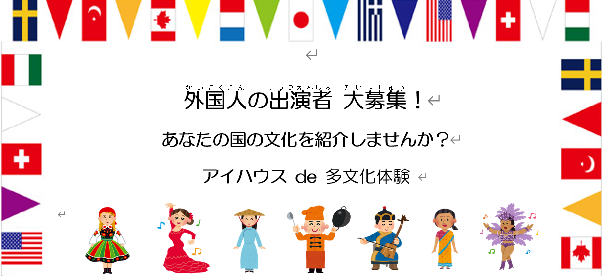 異なる国の人と出合い、違いを知り多様な文化を学び合いましょう! 互いに支え合い、繋がることの大切さを知りましょう! 国を越え、ともに大阪から新たな活力を生み出していきましょう!